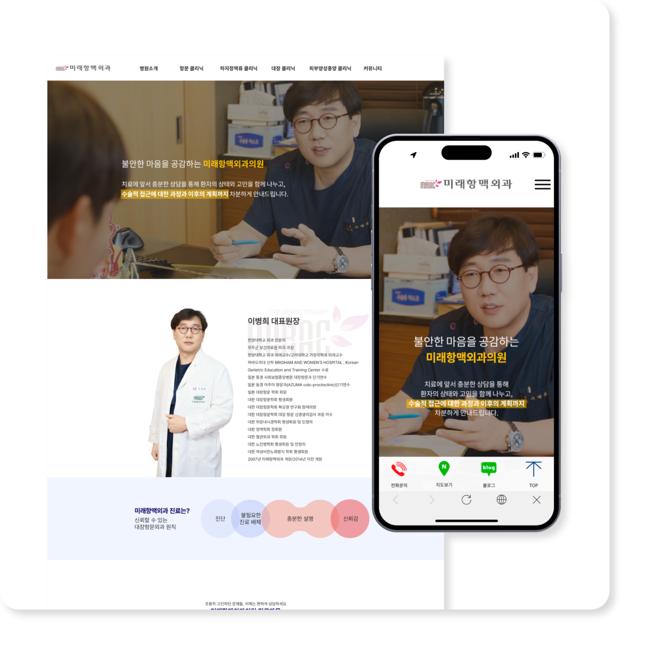 : 홈페이지에 들어가는 질환 페이지나 병원 메인 멘트를 직접조사해서 제작해드립니다.